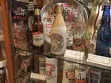 The oldest can in the collection is a Krueger Ale can from the 1930s which is similar to the first beer can ever produced in 1935. On display as well are older cone tops (such as a Brockert Ale "J-Spout" can from Worcester, Massachusetts, and a Star Banner Ale cone top from Boston) and obsolete "flat top" cans from the early days of beer can production. The museum is enhanced by a significant collection of breweriana (beer related collectibles) such as hanging pub towels in the rafters, thousands of coasters or "beer mats", beer trays, and a bar displaying both colorful cans and beer glasses from around the world. Crocheted beer can hats from the 1970s, beer can transistor radios, and a beer can telephone are also on display, as are miniature beer cans used in dollhouses. A unique 'pysanka' (painted Ukrainian style 'Heineken' egg) is also housed at the museum.[2]