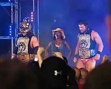 On May 29, 2010, Beer Money, Inc. made their debut for British professional wrestling promotion One Pro Wrestling (1PW), challenging Fight Club (Kid Fite and Liam Thomson) for the 1PW Tag Team Championship and winning the match via disqualification, which meant that Fite and Thomson retained their titles. On June 6, 2010, Beer Money, Inc. participated in the Mexican wrestling promotion AAA's Triplemanía XVIII event. The team competed in a 4-way elimination match for the AAA World Tag Team Championship and outlasted both then champions Atsushi Aoki and Go Shiozaki as well as former champions La Hermandad 187 (Joe Líder and Nicho el Millonario), but were defeated by Los Maniacos (Silver Cain and Último Gladiador), who won the championship.[73] The match was a result of a working relationship between TNA and AAA. On October 12, 2010, New Japan Pro Wrestling announced that Beer Money, Inc. would return to the promotion on October 22.[74] In their match Roode and Storm defeated IWGP Tag Team Champions, Bad Intentions (Giant Bernard and Karl Anderson), in a non–title match.[75] The following day Beer Money, Inc. continued their undefeated streak in Japan, by defeating No Limit (Tetsuya Naito and Yujiro Takahashi).[76] Beer Money, Inc. returned to New Japan on January 4, 2011, at Wrestle Kingdom V in Tokyo Dome, where they unsuccessfully challenged Bad Intentions for the IWGP Tag Team Championship in a three-way match, which also included Muscle Orchestra (Manabu Nakanishi and Strong Man).[77][78]