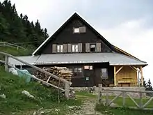 - 2½ hrs from the Zelenica Lodge (Planinski dom na Zelenici; 1,536 m or 5,039 ft) and across the Slovene Mountain Hiking Trail.