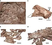 - ↑ Wang, S.; Zhang, Q.; Yang, R. (2018). "Reevaluation of the Dentary Structures of Caenagnathid Oviraptorosaurs (Dinosauria, Theropoda)". Scientific Reports. 8 (1) 391: 391. Bibcode:2018NatSR...8..391W. doi:10.1038/s41598-017-18703-1. PMC 5762635. PMID 29321606.