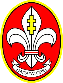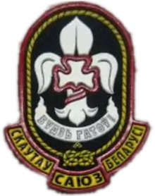 The Scout emblem incorporates the Cross of Lorraine, due to its appearance in the former national coat of arms of Belarus, the Pahonia.