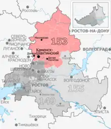 | Districts | Belokalitvinsky, Bokovsky, Chertkovsky, Donetsk, Kamensk-Shakhtinsky, Kamensky, Kasharsky, Millerovsky, Milyutinsky, Oblivsky, Sholokhovsky, Sovetsky, Tarasovsky, Tatsinsky, Verkhnedonskoy |