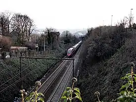 Between Ans and Liège the railway line has to descend 358 feet within less than 5 miles. This steep incline was initially negotiated with the help of a fixed engine driving an endless rope that was used to haul the trains without the help of a locomotive.[3] After the late 1860s, special banking locomotives were used and the fixed engine was discarded. Another line (line 36A) was built to bypass the incline but this line is only used by freight trains.[4]
