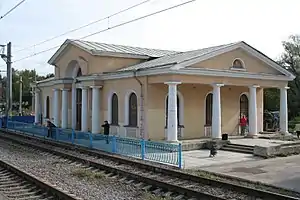 Beloostrov railway station (Russian: Белоостров железнодорожная станция) is a railway station of the Riihimäki–Saint Petersburg railway in Beloostrov located at the border between St. Petersburg and Leningrad Oblast in Russia. The station is also a rail junction of the bypass route with a same direction to Finland Station through Sestroretsk.