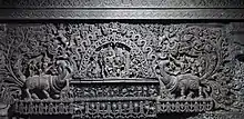 Other reliefs inside the hall include large images of Vishnu avatars, friezes of the Vedic and Puranic histories, and more scenes of the Ramayana.[54]