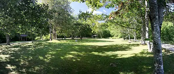 Ben Eoin Provincial Park [2] is a small secluded provincial park on an old farm against hardwood-covered hills in the community of Ben Eoin, Nova Scotia, Canada, on the south side of the East Bay of the Bras d'Or Lake, on Cape Breton Island. This picnic and hiking park is managed by the provincial Department of Natural Resources and is situated on a heavily wooded 225 acres (91 ha) parcel of Crown land. A short distance into the park there are several large neatly mown clearings (former farm fields) with picnic tables under the trees at the edge of the small fields. Pit toilets and disposal areas for hot coals are available onsite.
