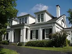 The Ben Johnson House is in the northern outskirts of Bardstown, Kentucky. It was built in 1851 in a Greek Revival style for state senator and lieutenant governor William Johnson. The house's name comes from William's son Ben Johnson, who was a state senator for two decades and was on the Kentucky High Commission for 16 years.