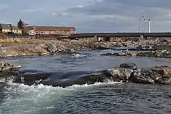 The park is located on the middle Deschutes River. It spans a 200-yard stretch of the river, and intersects with Colorado Avenue, at 166 SW Shevlin Hixon Dr., Bend, OR 97702. It features three distinct channels. On river left is the "passageway" channel, which consists of several small rapids that are appropriate for tubing. The middle channel is the "whitewater" channel, and is labeled "experts only". It is appropriate for whitewater kayakers, surfers, bodyboarders, and experienced paddleboarders. The third channel, on river right, is the "habitat" channel, and is strictly off limits to the public. Its purpose is to "protect and enhance river health and provide habitat to important local and migratory wildlife."[5] A prime example of a wildlife species benefiting from this channel is the Oregon spotted frog, which is listed as threatened under the Endangered Species Act.[6]