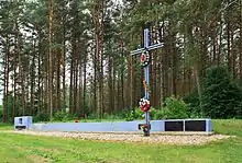 Commemorating the victims of the "death road" became possible after the revolutions of 1989 and the dissolution of the Soviet Union. In the summer of 1993, families of the victims went on a pilgrimage to the places of execution in Berezwecz-Hlybokaye and Taklinovo-Mikalajeva. A mass was celebrated by the chaplain of the Federation of Khatyn families, Fr. Zdzisław Peszkowski.[45][46] Thanks to the efforts of the Council for the Protection of Struggle and Martyrdom Sites, a monument in honor of the murdered was erected on the mass grave in Mikalajeva.[45]