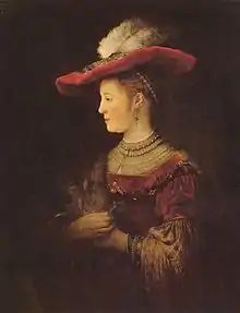 Schloss Wilhelmshöhe was damaged by Allied bombs in World War II. From 1968 to 1974, it was rebuilt as an art museum. It houses a wallpaper collection, a collection of Graeco-Roman antiques, and a gallery of Old Masters paintings.[3] The collection focuses on the 16th and 17th century, containing masterpieces by German, Italian, French and Spanish painters. It comprises the second-largest collection of Rembrandts in Germany. Rembrandt's famous "Saskia" and "The Man with the Slouch Hat" by Frans Hals are among them.