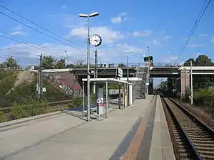 Berlin-Staaken is a railway station located in Staaken, a locality in the Spandau district of Berlin. It is one of only two Deutsche Bahn stations in Berlin not served by the S-Bahn; Albrechtshof station is the other.