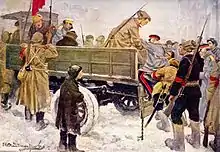 In 1917, the Russian army was permanently weakened by the arrest of officers (Ivan Vladimirov painting).