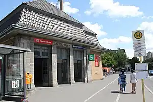Messe Nord/ICC (Witzleben) is a station in the Charlottenburg district of Berlin. It is located on the Ringbahn circle line, served by S-Bahn lines S41/S42 and S46. It is linked to the Kaiserdamm U-Bahn station on line U2 via a short footpath.