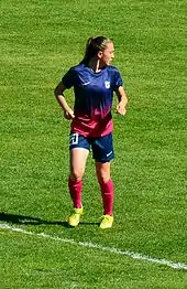 After playing six seasons for Kdz. Ereğlispor, she transferred to the Izmir-based league-champions Konak Belediyespor on July 25, 2014.[4] With her new team, she took part at the 2014–15 UEFA Women's Champions League qualifying round matches.[5][6][7] She played in three matches of the 2015–16 UEFA Women's Champions League qualifying round, and scored one goal.[8][9][10]