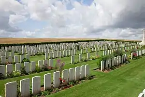 The Bernafay Wood British Cemetery is a cemetery located in the Somme region of France commemorating British and Commonwealth soldiers who fought in the Battle of the Somme and against the German 1918 spring offensive in World War I. The cemetery contains mostly those who died between July 1916 and April 1917 and March–August 1918.[1]