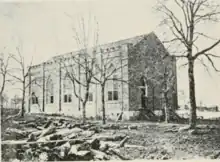 When the City of Kansas City, Missouri was incorporated in 1853 Fr. Donnelly was one of the early proponents of local development. He organized a group of 300 Irish immigrants, mostly from the counties of Connacht to come to Kansas City and begin the process of carving through the bluffs of the Missouri River that were a barrier between the town's original plot and the river landings in the West and East Bottoms.[10] Among the early ecclesiastical buildings that Fr. Donnelly constructed was a new brick Church of the Immaculate Conception built on the site of the old Church of St. John Francis Regis. To serve these Irish immigrants Fr. Donnelly was given permission to establish a new parish in Kansas City called St. Patrick's in 1869 next to which Fr. Donnelly established a brickworks that became central to the construction of many of the original buildings of the new city.[11] In 1872 due to structural problems the original St. Patrick's Church had to be demolished and a new church located at the intersection of 8th Street and Cherry Street was dedicated on Christmas Day 1875.[12]