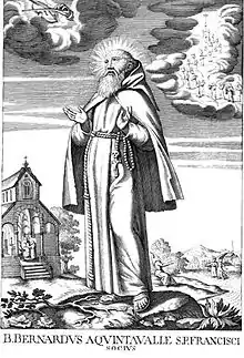 Bernard of Quintavalle (died 1241) was the first disciple of St. Francis of Assisi.[1] Bernard was declared as the Minorum Ordinis prima plantula, the "First fruits of the Minor Orders". He accompanied Francis on a number of missionary journeys and served as Minister Provincial in Spain.