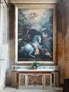 He collaborated on Michele Sanmicheli's Pellegrini chapel in San Bernardino. The 1579 altarpiece, by India, depicts the Madonna with Child and St. Anne.[4][5] In 1584, he completed a Conversion of Saint Paul for Santi Nazaro e Celso.