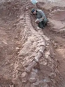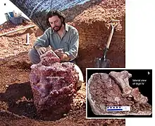 Paleontologist Bernardo Gonzalez Riga during the discovery of a new sauropod species of the Late Cretaceous of Argentina