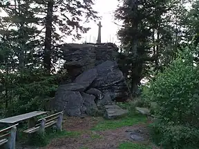 The Bernstein is a mountain, 693.5 m above sea level (NHN),[1] in the Northern Black Forest within the borough of Gaggenau (estate of Rotenfels), and the borough of Bad Herrenalb, (estate of Bernbach). It is part of the ridge that borders the lower Murg valley on its eastern side. The summit of this mountain is formed by a six-metre-high crag made of bunter sandstone with a flat top, 25 m² in area, from where there are good views.