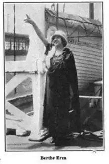 - ↑ "Berthe Erza Arrives to Coach with Braggiotti" Musical Courier (March 18, 1920): 40.