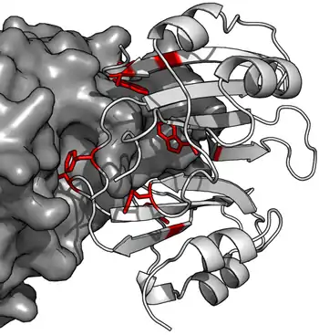 - ↑ Lim D, Park HU, De Castro L, Kang SG, Lee HS, Jensen S, Lee KJ, Strynadka NC (October 2001). "Crystal structure and kinetic analysis of beta-lactamase inhibitor protein-II in complex with TEM-1 beta-lactamase". Nat. Struct. Biol. 8 (10): 848–52. doi:10.1038/nsb1001-848. PMID 11573088. S2CID 29753789.