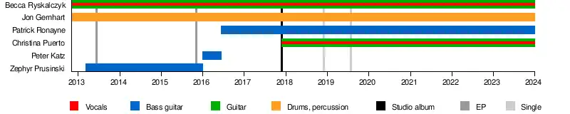 Becca Ryskalczyk, Jon Gernhart, and Zephyr Prusinski were part of a closely knit music community while students at SUNY Fredonia,[4] and SUNY Purchase (Zephyr Prusinski). They had played in separate bands, but knew each other well just from spending time in similar circles. Through performances at house shows and the bar and club scene of Buffalo, there were enough places for developing musicians to flourish in Western New York.[1]