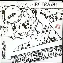 Betrayal, Fear, Anger, Hatred is the first EP by Canadian punk rock band Nomeansno. Released in 1981, it and the "Look, Here Come the Wormies / SS Social Service" 7-inch split single from the previous year are the two official Nomeansno releases from their origins recording in their parents' basement before becoming a live band.[1] Originally self-released in a limited vinyl run, the EP since has been re-released by the band's Wrong Records imprint on 7-inch and included on reissues of the band's 1982 debut album Mama.