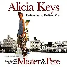 "Better You, Better Me" is a song by American singer and songwriter Alicia Keys.[1] The song is featured in The Inevitable Defeat of Mister & Pete, a film about two inner-city boys living on their own in New York City and directed by George Tillman, Jr and starring Skylan Brooks, Ethan Dizon, Jennifer Hudson and Anthony Mackie.[1] The film features an original score from Keys and Mark Isham.[1] The song was released through RCA Records as a single on October 11, 2013.[2] Music videos for the song was released on the DVD release of the film.[3]