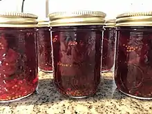Betteraves marinées are a recipe which dates back to when families in French-speaking parts of Canada would need to preserve food for the winter. The beets are cut up, boiled and put in jars. Then, they are coated in a recently sterilised mix of vinegar, mustard seeds, beet water and sugar, and the jar is quickly closed to ensure air cannot enter or leave the jar. [1][2] The beets can be preserved this way for years. The betteraves marinées are best eaten cold.