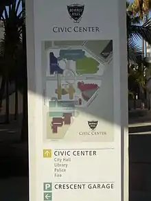 The Beverly Hills Civic Center stands at 455 North Rexford Drive in Beverly Hills, California.[1]