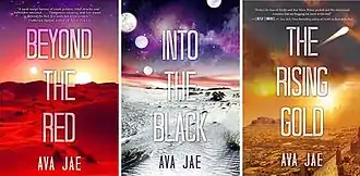 - ↑ Jae, Ava (31 October 2017). Beyond the Red (Simon & Schuster). ISBN 9781510722408. Jae, Ava (25 September 2018). Into the Black (Simon & Schuster). ISBN 9781510738669. Jae, Ava (2 October 2018). The Rising Gold (Simon & Schuster). ISBN 9781510722385. Retrieved 2019-09-14.