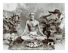 In 1873, Bhagatji Maharaj first met his eventual successor Shastri Yagnapurushdas in Surat.[4] During an assembly, Bhagatji Maharaj delivered a discourse while simultaneously stitching a decorative cloth-piece for the mandir elephant. Yagnapurushdas, already surprised upon seeing this feat, was further impressed when Bhagatji Maharaj spontaneously addressed his incredulity and unspoken question with the phrase, "One who is wise has innumerable eyes".[3] Realizing Bhagatji Maharaj's spiritual greatness from this incident, Shastri Yagnapurushdas requested Bhagatji Maharaj to become his guru.[9] Although this decision was criticized by some due to Bhagatji Maharaj's low-caste, Shastri Yagnapurushdas pointed to the teachings of Swaminarayan in the Vachanamrut to argue that a spiritual leader should not be judged by social classifications but by spiritual elevation.[9]