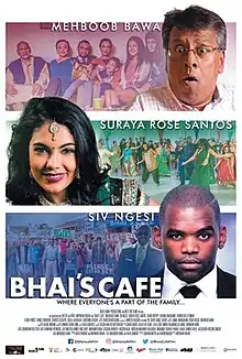 Bhai's Cafe is a South African musical comedy-drama film shot in the style of a Bollywood film directed by Maynard Kraak from a screenplay by Darron Meyer and Aaron Naidoo. It premiered at the 2019 Durban International Film Festival.[1] It had a brief theatrical release in February 2020 before moving to DStv Box Office when cinemas closed the following month.[2][3]