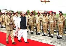 Vice President Shekhawat inspecting guard of honor at Biju Patnaik International Airport.