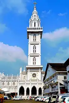 The Bible Tower is situated in Thrissur city of Kerala, India. It was inaugurated on 7 January 2007. The tower is the tallest church tower in India and Asia. It is also the tallest structure in whole of Kerala.[1] The 79 metre (260 ft) tower stands behind two towers of 42.5 metres (140 ft) height.[2]