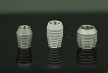 Bicon Dental Implants is a privately owned company located in Boston, MA. The company specializes in short dental implants that use a locking taper or cold welding connection to secure the abutment to the implant. Bicon is notable and worthy of mention for the following three reasons: First, Bicon implants are extremely short in length.[1][2][3][4] The size of Bicon implants allow them to be placed in regions that are crowded with natural teeth and/or implants, or in regions that would otherwise require bone grafting.[5] Second, the implants do not have the screw-form design typical of other available implants.[6] Third, the abutments are connected to the implant via a locking taper. This is notable from both a medical and engineering standpoint as no other implant company offers an implant with a biological seal at the implant/abutment interface; almost all other implants possess an internal screw to connect their abutments.[6]