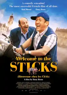 Welcome to the Sticks (French: Bienvenue chez les Ch'tis,[lower-alpha 1] French pronunciation: [bjɛ̃vny ʃe le ʃti]) is a 2008 French comedy film directed and co-written by Dany Boon and starring Kad Merad and Boon himself. The film is the highest-grossing French film of all time at the box office in France.[3]