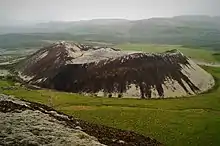Bifröst is surrounded by a 3,000-year-old ʻaʻā lava (or apalhraun) field, Grábrókarhraun [ˈkrauːˌprouːkar̥ˌr̥œyːn], which has been overgrown with moss and heather. It is part of the around 90 km long volcanic system of Ljósufjöll. Just behind the university campus are some craters which produced the lava field, the biggest one is called Grábrók (Stóra Grábrók [ˈstouːra ˈkrauːˌprouːk]) and the one beside it Grábrókarfell [ˈkrauːˌprouːkarˌfɛtl̥].[3]
