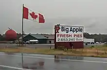 The Big Apple is a roadside attraction in Colborne, a village in the municipality of Cramahe, in Northumberland County, Ontario, Canada. Located on the south side of Ontario Highway 401 at interchange 497 (Northumberland County Road 25/Percy Street), it is easily recognizable from the highway by its large apple-shaped structure, claimed to be the world's largest.