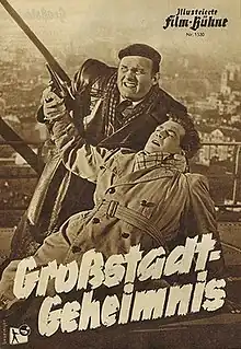 Big City Secret (German: Großstadtgeheimnis) is a 1952 West German crime film directed by Leo de Laforgue and starring Ingrid Lutz, Fritz Wagner, and Joachim Teege .[1] It was shot entirely on location around Berlin, Hamburg and Dresden, partly using pre-war stock footage. It is inspired partly by the criminal Sass Brothers active in the Weimar era.