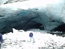 A severe autumn storm in November 2006 caused flooding of the South Fork Stillaguamish River destroying a major footbridge to the Big Four Ice Caves. Estimated repair costs to replace the damaged span were approximately $425,000, and repairs were completed in June 2009.[2] While the trail is open to the public, the snowfield itself was closed temporarily[3] due to cave-ins and slides which have killed four hikers in incidents in 1998, 2010, and in 2015.[4][5] Because of the danger, hikers are advised to stay out of the caves and are monitored by forest rangers.[6]