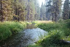 Big Marsh Creek is a 15-mile (24 km) tributary of Crescent Creek in Klamath County, in the U.S. state of Oregon. The creek flows generally north from its source upstream of Big Marsh, south of Crescent Lake on the eastern side of the Cascade Range.[4] All of Big Marsh Creek and 10 miles (16 km) of Crescent Creek are parts of the National Wild and Scenic Rivers System.[5][6][7] In turn, Crescent Creek is a tributary of the Little Deschutes River, of which 12 miles (19 km) in the same general area are also part of the national system.[8]