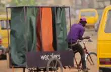 In 2012, she co-founded Wecyclers, a company that collects recyclable rubbish from households in Lagos. When the business started, Adebiyi would take out a tricycle to do collections to find out more about her new business.[8] Once the rubbish is sorted, her company sends a SMS back to the household, informing them of how many points they have earned for trading in the rubbish.[9] These points can be converted for food, cleaning products, or cellphone minutes.[10] The company works in partnership with the Lagos Waste Management Authority. Lagos produces 9,000 tons of waste per day and the authority was trying to double the proportion that was recycled from the 18% figure in 2011.[9] The Nigerian economy is one of the largest economies in Africa, but the disorganisation in Lagos means that rubbish cannot always be collected. Wecyclers use modified tricycles that enable the collection of rubbish from places where normal vehicles cannot reach,[7] gathering waste from thousands of households. The company's estimate in October 2015 is that it has collected over 500 tons of rubbish, it has created value from that rubbish and has employed 80 people.[7]