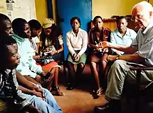 William H Siemering with producers of the youth program at Nkhotakota Community Radio in Malawi