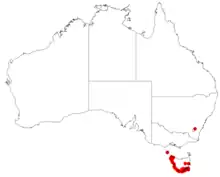 This species of billardiera grows in scrub on coastal dolerite from King Island to south-eastern Tasmania.[2][3]