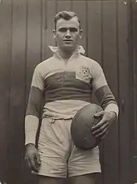 Billy Holding played fullback, and scored 4-goals in Warrington's 17-21 defeat by Huddersfield in the 1933 Challenge Cup Final during the 1932–33 season at Wembley Stadium, London on Saturday 6 May 1933, due to a broken leg he missed the 1935–36 Challenge Cup Final during the 1935–36 season.[3]