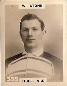 William J. Stone (birth unknown – death unknown) was an English rugby union and professional rugby league footballer who played in the 1910s and 1920s. He played at representative level for Great Britain and England, and at club level for Hull FC, as a three-quarter back.[1] He was captain of Hull during the 1921–22 and 1922–23 seasons.[4]