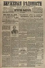 ![]() 15 July 1904 edition reporting on the assassination of Vyacheslav von Plehve | |