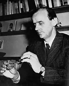 Björn-Erik Höijer was born at Malmberget, Sweden. Originally a handicraft teacher (sloyd), Höijer made his literary debut in 1940 with the short-story collection Grått berg.[1] Among his novels are Parentation from 1945 and Lavinen from 1961. Among his plays are Isak Juntti hade många söner from 1954 and En gruvarbetares död from 1990.[2] He was awarded the Dobloug Prize in 1967.[3] He died during 1996 and was buried at Uppsala gamla kyrkogård.